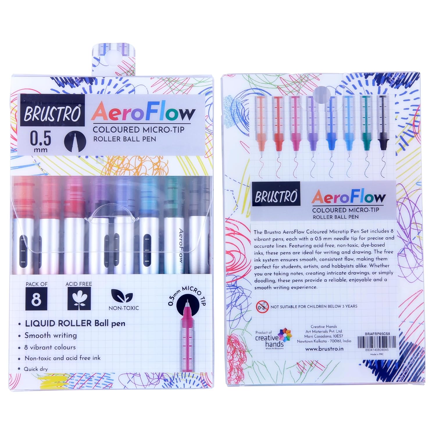 BRUSTRO AeroFlow Coloured Micro-tip Roller Ball Pen Set